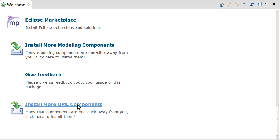 The UML Discovery component provides an easy way to discover UML technologies. In a nutshell this project provides an easy one click discover and install wizard to extend UML Designer with other UML based technologies.