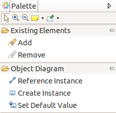 It is possible to create an instance by selecting the creation tool from the palette and then clicking on the diagram or an element. A diagram is associated to a package and when the user click on the diagram background the element is created under the corresponding package in the UML model. If the user selects a container, the element will be created under the corresponding semantic element in the UML model. Tooltip tools are also available to create instances.